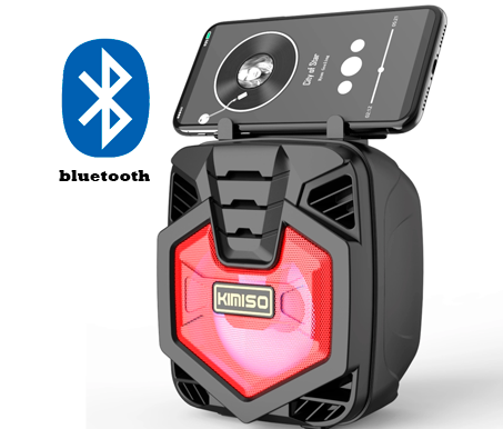 Caixa de som portátil de qualidade, com suporte para apoiar o celular, perfeito pra você ouvir suas músicas do melhor jeito possível.